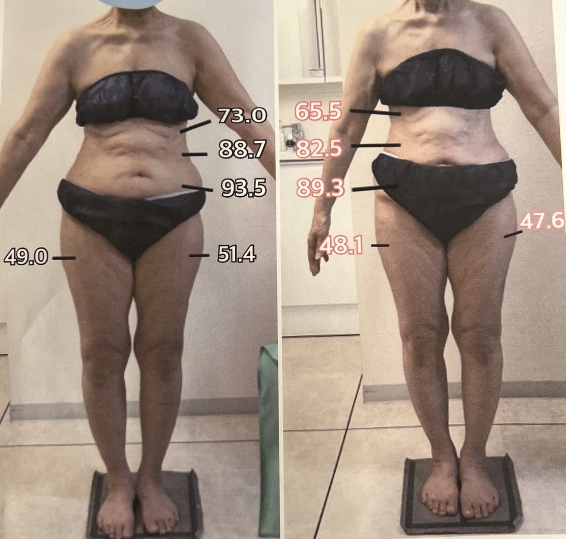 写真のお客様は一番気にされていたお腹周りを(-7.5㎝)も落とすことが出来ました✨